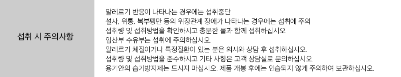 | 섭취시 주의사항 | |