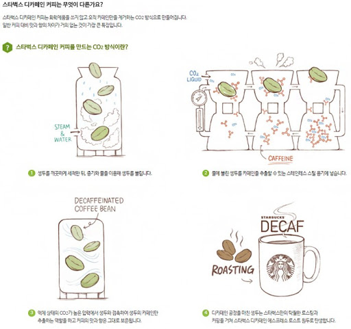 그렇다면 스타벅스 디카페인 원두는 어떤 추출 공정을 사용할까요?