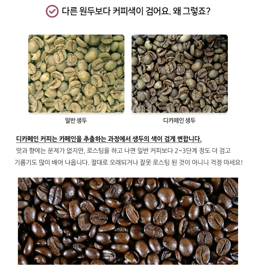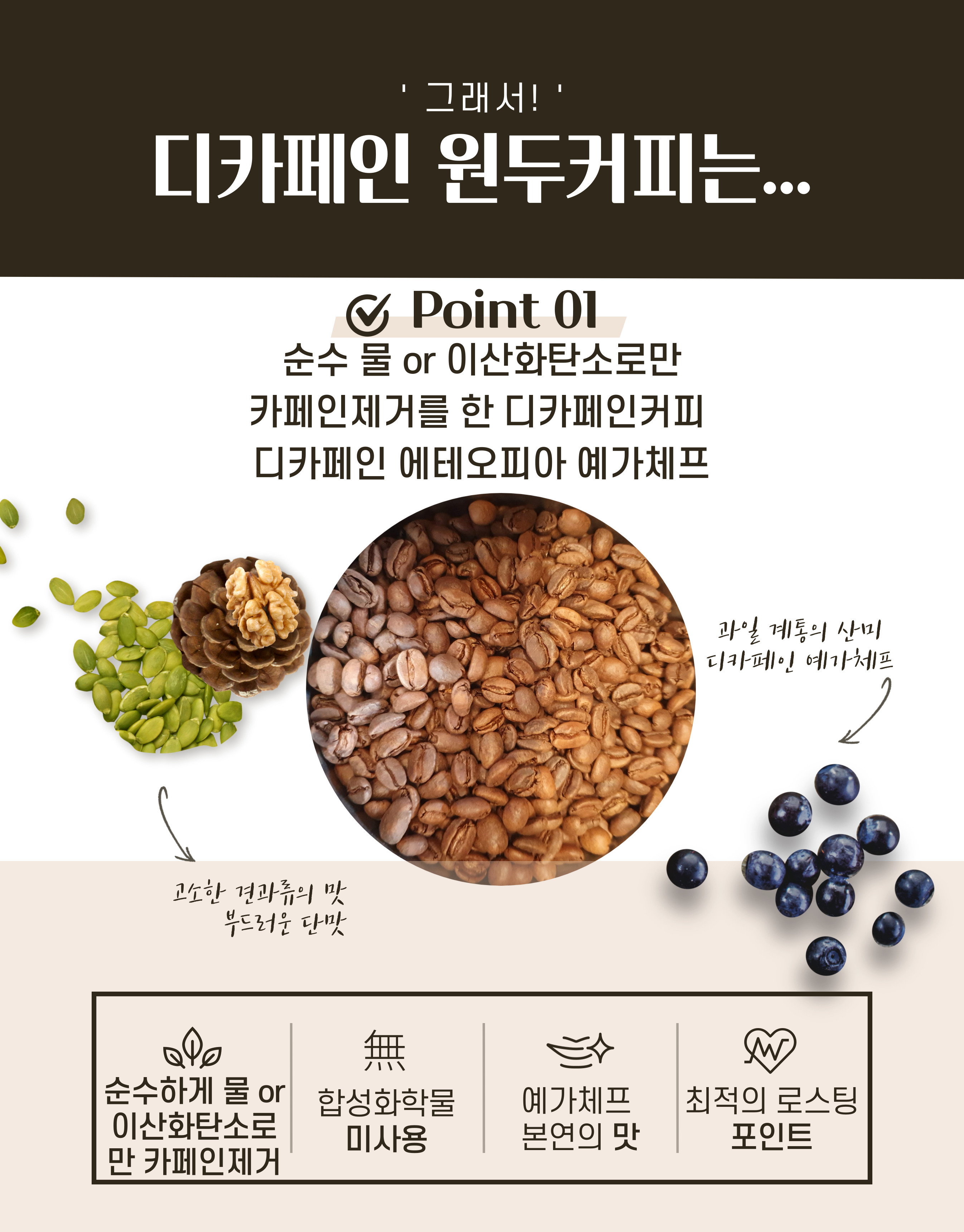 - 구매 시 확인: 스위스 워터 프로세스 여부 등 제조법 확인합니다.