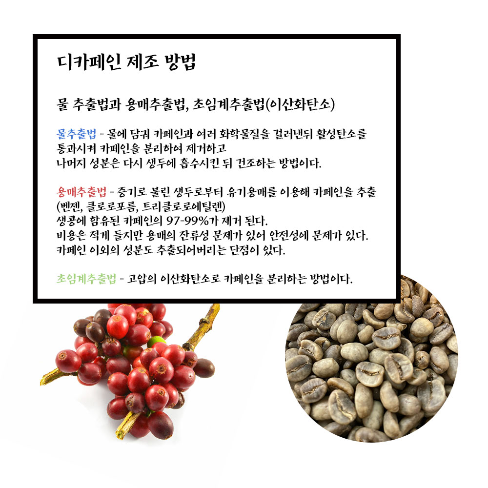 | 카페인 제거율 | 90% 이상 | 99% 이상 | 99% 이상 |