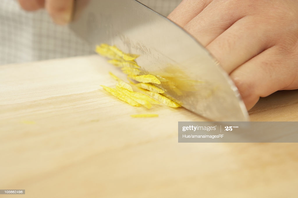 유자 껍질은 꼭지를 살짝 눌러 빼고 최대한 가늘게 채 썰어 설탕에 버무려 줍니다.