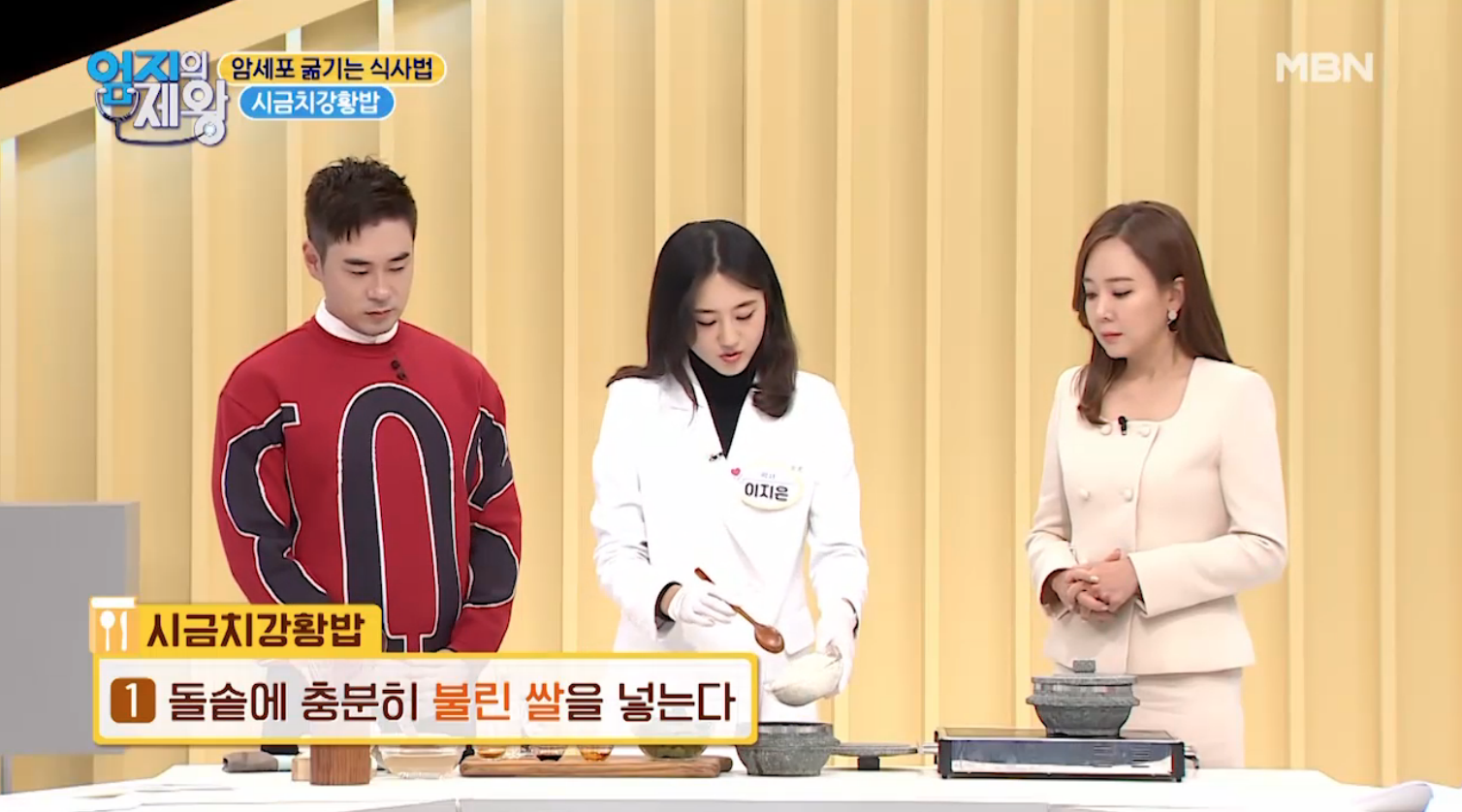 처음에 재료가 무엇인지 소개하지 않고, 딱 완성된 밥을 엄지의 제왕 패널분들에게 드렸더니