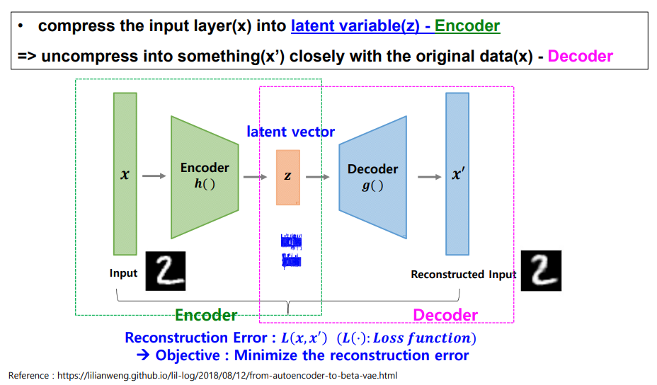- → uncompress into something(x') closely with the original data(x) - Decoder